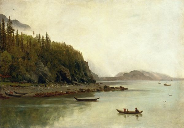 Hans Gude painted "På Kysten" with oil, capturing a serene coastal scene where a small boat is dwarfed by monumental nature. The cliff, a powerful presence, echoes the sublime—a concept that captivated Romantic artists. Like the mountainscapes of Caspar David Friedrich, this cliff inspires awe, yet also reflects human vulnerability. The boat, a vessel of passage, reminds us of ancient myths. Think of Charon ferrying souls across the River Styx, or even the epic journeys of Norse seafarers. The calm sea mirrors a dreamlike subconscious, where the human desire to conquer nature is constantly met by its imposing and humbling force. The image stirs a deep-seated longing for nature, an ancestral connection to the wild that continues to echo through our collective psyche. This scene offers a timeless meditation on our place within the natural world.