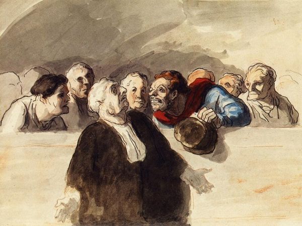 Editor: This is "Witches' Sabbath," also known as "The Great He-Goat," an oil painting by Francisco de Goya from 1823. It's incredibly unsettling, with its dark palette and the grotesque figures surrounding the goat. What do you see in this piece, particularly regarding its historical and social context? Curator: Goya’s "Witches’ Sabbath" offers a potent critique of Spanish society during a period of immense political and social upheaval. The painting isn't just a depiction of a fantastical scene, but a commentary on ignorance, superstition, and the abuse of power. How do you interpret the gathering of women around the goat figure? Editor: I see it as a representation of the marginalized, maybe even a secret society operating outside the norms. But the goat feels…almost sympathetic? Curator: Exactly. Consider how the image reflects the suppression of dissenting voices in Spain at the time, where the Inquisition was still a powerful force. Could these ‘witches’ be stand-ins for those deemed heretical or subversive by the establishment? Think about gender and power dynamics at play here too. Editor: So, the women aren’t literally witches but a symbol of those challenging authority? And the goat could be an anti-establishment figure? Curator: Precisely. Goya’s work often invites multiple readings, blurring the lines between reality and nightmare to expose societal hypocrisies. By centering those figures that go against social normatives and that might even look like they break it, it may incite one to interrogate which impositions truly give meaning to the lives of such subjects, that could only be unveiled when observed together. Editor: I never considered how politically charged the image was. It really reframes the experience of looking at the artwork. Curator: And it shows how much art history can teach us about understanding contemporary oppressions! Editor: Definitely. I’m walking away with so much food for thought.