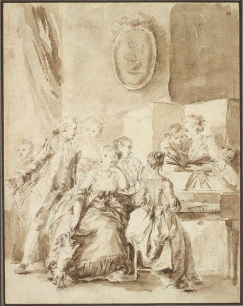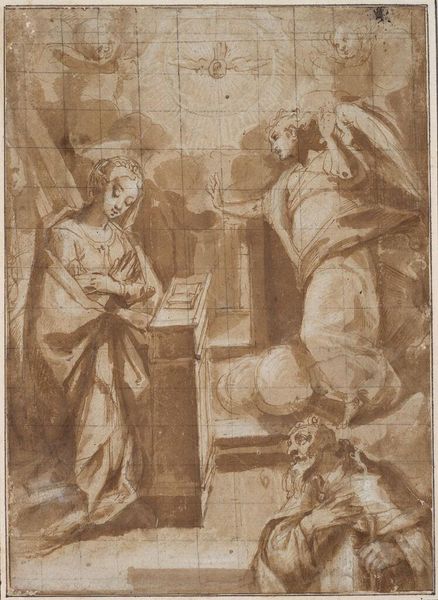Curator: This is Guido Reni's "Holy Family," residing here at the Harvard Art Museums. Look at those figures swirling, all caught in a web of fine lines. Editor: It’s fascinating how Reni achieves so much depth with what seems like a fairly simple etching technique. The labor involved in creating those consistent, controlled lines must have been considerable. Curator: Yes, and there's a beautiful intimacy here. It's like a whispered prayer rendered in ink. I feel drawn into the family's quietude. Editor: I'm intrigued by the use of etching, a process that allows for multiple impressions. It suggests the intention of wider distribution, perhaps making the divine accessible to a broader audience. Curator: Exactly. The image becomes a tangible object of faith, shared and contemplated. Almost like a portable relic. Editor: It makes you consider the role of reproductive technologies in shaping religious devotion. The materiality and dissemination of art become integral to its spiritual function. Curator: I love how this detailed print invites such pondering. Editor: Definitely a compelling meditation on faith and craft.
