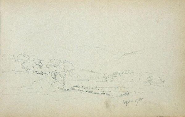 Curator: This is Benjamin Champney's "Lake Mooselucmaguntic, Maine," housed right here at the Harvard Art Museums, a fleeting graphite sketch of Maine's wilderness. Editor: It’s like a whisper of a memory. So understated, almost ghostly. Makes you wonder what Champney was thinking, or seeing, at that exact moment. Curator: He belonged to the White Mountain School, idealizing nature as a divine manifestation. Water, here, frequently mirrors the heavens, a pathway to spiritual insight. Editor: I can see that. It's all about reflection, not just in the water, but inward, isn't it? A very quiet kind of grandeur. Curator: Indeed. These landscapes spoke to ideas of national identity, reflecting the American experience of discovering new frontiers. Editor: There's a humble beauty in the bareness. It invites you to fill in the details yourself, to feel the silence and vastness. Curator: And through that, we participate in the cultural memory of the American landscape, a legacy Champney so delicately captured. Editor: It's more than just a landscape, it's a mood. I feel a little calmer just looking at it. A small treasure.