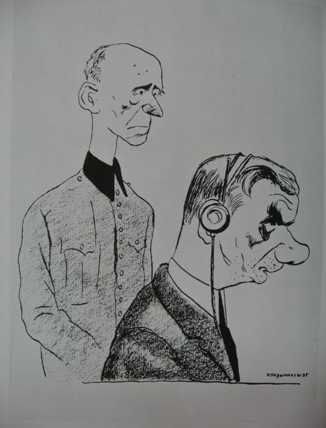 This untitled image by Kukryniksy, made around 1945, likely used ink, and shows two figures in profile. You can see the marks of the pen, scratchy and quick, almost as if the artists were drawing in a hurry, trying to capture a fleeting moment. That speed and directness is something I relate to in my own practice. The textures they create are fascinating. Look at the jacket on the left, made up of many small scribbles. It gives a real sense of depth and tactile quality. The face in profile has these long swooping lines; there is something very caricatured about it. The whole image has a starkness and directness, reminiscent of some of Philip Guston’s ink drawings, but with a more pointed message. The work reminds us that art can be a powerful tool for social commentary. It embraces ambiguity and interpretation over fixed meanings, and this piece is a strong example of that.