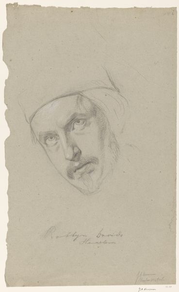 Curator: The figure that confronts us is a drawing rendered in pencil on paper, titled "The Patricians of the Old Men's Almshouse in Haarlem. A Figure" by James Ensor. Editor: The gaze is unsettlingly direct; a face emerges from a nest of cross-hatched pencil marks. There’s a somber quality. Curator: Ensor often explored societal structures and hierarchies. Old men's almshouses were institutions offering shelter to the elderly poor. By depicting "patricians"—members of the ruling class—associated with such a place, he touches on themes of power, aging, and social responsibility. Editor: Interesting... The style strikes me as preliminary, or even detached. This isn’t about glorifying the subject; the hurried lines reveal, perhaps, the fleeting nature of their authority or privilege? Curator: Precisely. Ensor was keenly aware of the performative nature of power. Note the subject's clothes: they might speak of belonging to the elite class, but the pencil rendering softens any impression of true opulence. Consider the psychological weight: a powerful visual contradiction! Editor: The eyes seem heavy with knowing, perhaps world-weariness? Given Ensor's wider body of work, particularly his grotesque carnival masks and skeleton paintings, I wonder if there's an element of satire present. Curator: Definitely. Ensor used symbols with pointed intent; here, the hat may be an icon of status undermined by his expressive but somewhat crude technique. By simplifying his figures and reducing forms with hasty outlines, his critical sentiment comes out effectively. The piece offers not an endorsement but a quiet, probing critique of how institutions handle questions of dignity and visibility. Editor: This was such an evocative reflection of Ensor's historical and social sentiments through something as minimal as a sketch. Curator: And that’s part of the brilliance; it makes us question what symbols mean in today's cultural vocabulary.