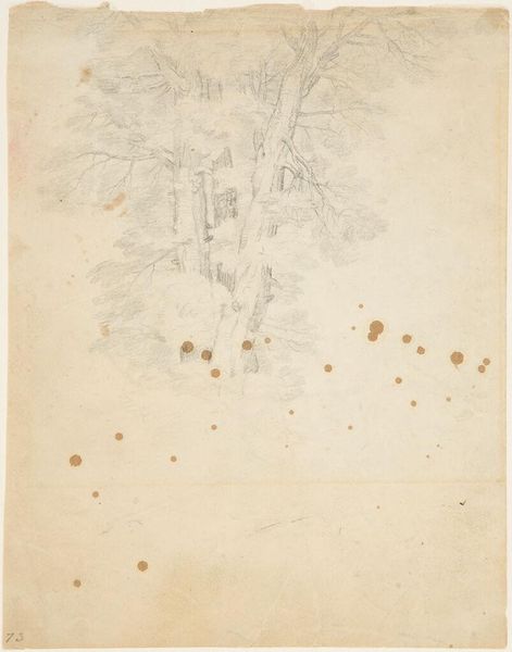 Editor: This is "Studies of Trees and Foliage" by Pierre-Auguste Renoir, created sometime between 1884 and 1887. It looks like he used watercolor, ink, and coloured pencil on paper. What strikes me most is its almost scientific approach, like a botanist meticulously documenting different tree species, but also capturing that fleeting Impressionist feel. How do you interpret this work? Curator: It's interesting you see that scientific quality. I’m struck by how this work sits within a larger discussion about Impressionism and the shift in artistic patronage at the time. Renoir, along with other Impressionists, began increasingly catering to a rising middle class that sought accessible and beautiful representations of nature and leisure. Does this drawing reflect a genuine engagement with nature, or a calculated move to appeal to this market? Editor: That's a great question. The choice of media feels significant too. The use of watercolor and coloured pencil lends a certain softness, a kind of ‘prettiness’ that might appeal to a domestic audience. But what about the loose, unfinished quality? Does that suggest a study, something more personal? Curator: Precisely. That unfinished quality is key. It gestures toward the immediacy of plein air painting, the ‘truth’ of observing nature directly. But we must remember that even ‘truthful’ depictions are constructed, shaped by artistic and commercial considerations. So, is this image more authentic or posed? Editor: That’s a really fascinating point about how these seemingly simple studies are actually layered with social and market considerations. Curator: Indeed. It highlights the complex interplay between artistic expression, societal expectations, and economic realities in late 19th-century France. It is fascinating that drawings from such an intimate setting end up becoming so intertwined with economic factors. Editor: This makes me think about how much more thought needs to go into interpreting works of art. It's a good point that authenticity isn’t always what it seems.