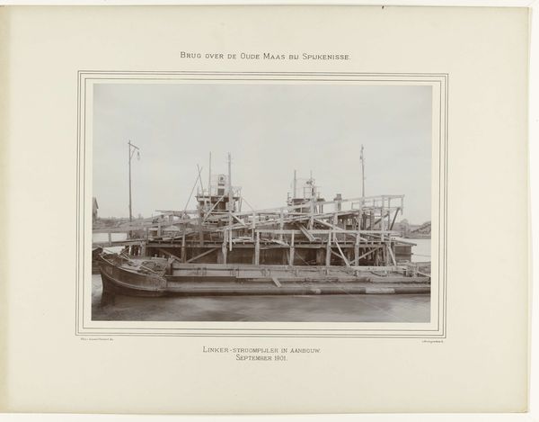 This photograph, taken in August 1902 by Arnaud Pistoor & Zoon, captures construction work on the bridge over the Oude Maas near Spijkenisse. It's all about the process, isn't it? The building of things, how we move from one place to another, physically, conceptually. I'm drawn to the texture here, the grainy quality of the black and white, the roughness of the earth being moved by that steam train. Look at the way the light reflects off the water, and the solidity of the bridge under construction. Think about what it must have felt like to be there, the sounds, the smells, the sheer effort of it all. The photograph becomes a record, a memento of a moment in time. It reminds me a little of Charles Sheeler's industrial landscapes, that same interest in the beauty and power of human-made structures. But maybe even more, it makes me think about the ongoing conversation that art is, how each image builds on what came before, and points toward what's next. It's not about fixed meanings, but about an ongoing exploration.