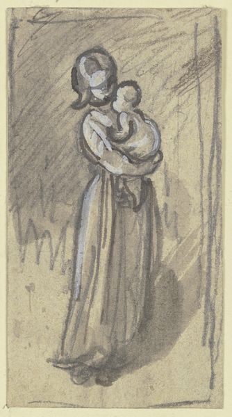 Albert Neuhuys created this sketch of a woman and child at the beach in the late 19th or early 20th century, using chalk and pencil on paper. The rough strokes and unfinished quality of the drawing give us a sense of immediacy, as though we're looking over the artist's shoulder as he quickly captures a fleeting moment. The choice of humble materials – chalk and pencil – further emphasizes this sense of informality, contrasting with the grand scale and polished surfaces often associated with fine art. But the drawing also offers a glimpse into the social context of leisure and labor during this period. The woman's attire and the presence of a beach chair suggest a certain level of affluence, while the simplicity of the materials and the sketch-like quality hint at the accessibility of art-making itself. It blurs the boundaries between high art and everyday life, inviting us to consider the value of both skill and subject matter.