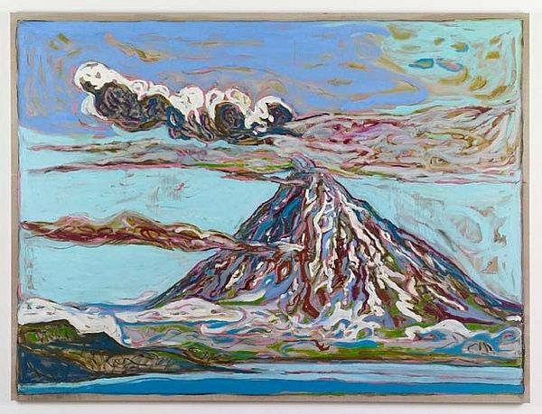 Editor: So, this is Marsden Hartley's "Mt. Katahdin," painted between 1939 and 1940 using oil paint. It's such a striking image – the mountain looms so dark and imposing. What social and political currents might have shaped Hartley's representation of this landscape? Curator: Exactly. While seemingly a straightforward landscape, consider the historical context. Hartley painted this in the late 1930s, a period of economic depression and growing anxiety about war. How might the rugged, almost austere depiction of Katahdin reflect anxieties of the era, especially regarding masculinity? Consider also Hartley’s personal identity; as a gay man navigating a heteronormative society, did his experiences shape his vision of the American landscape? Editor: That's interesting. So, you’re saying the mountain, this seemingly 'masculine' symbol, could also be interpreted through the lens of Hartley's own identity and perhaps his struggles? I always thought of it in a purely environmental, geographical way, the great state of Maine… Curator: Precisely. Think about regionalism too, and what Hartley consciously emphasizes through those artistic decisions. Why paint Maine in this particular way? Is it about reclaiming a certain type of identity rooted in place, perhaps an attempt to redefine what it means to be American, especially as European Modernism was also making waves across the Atlantic? What purpose might that severe geometry of form serve in asserting cultural belonging and defiance, not to mention sexual identity? Editor: I hadn’t considered it in terms of defiance before. Thinking about it that way adds a whole new layer. Curator: And isn't that what makes art so powerful? It allows for these multiple readings, prompting us to confront not just what's on the canvas, but what's behind it, within the artist, and reflected within ourselves and in our society. Editor: Definitely. I see it so differently now. Thank you!