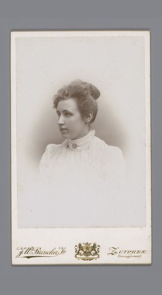Editor: Here we have Machiel Hendricus Laddé's "Portret van een onbekende vrouw," a photograph from somewhere around 1892 to 1906, here at the Rijksmuseum. There's such a dreamlike quality to it. It’s beautiful, yet a little melancholic. What do you make of this portrait? Curator: Ah, yes, she gazes out, doesn't she? I am curious... What do *you* think she’s thinking? To me, Laddé’s work often feels like a whisper from another time, a secret shared only through the soft focus of Pictorialism. This piece is special, and its dreamlike quality is entirely deliberate, you see, moving away from stark realism towards something altogether more… evocative. Look how the light falls across her face, softening the edges, imbuing her with a sense of mystery. The photographer isn't just capturing a likeness; he's hinting at an inner world. Don't you feel it? Editor: Definitely! The soft focus really creates a sense of intimacy. Do you think that softness might also obscure some details? Almost like a way of idealizing the subject? Curator: Perhaps, though I prefer to think that the lack of stark detail allows us to project our own interpretations, in essence turning us into active participants. Laddé wasn't simply creating an image; he was starting a conversation. This pictorial style does that; you just want to fill the details in. I think she’s smiling at the prospect of her life, her eyes are focused on it intently! Editor: That's a lovely idea, actively engaging with the past like that. It definitely adds a new dimension to how I see photography of this era. Curator: Absolutely. These photographers, these artists, it makes one wonder who this lovely lady really was! Editor: Food for thought, indeed. Thank you for your perspective!
