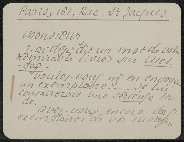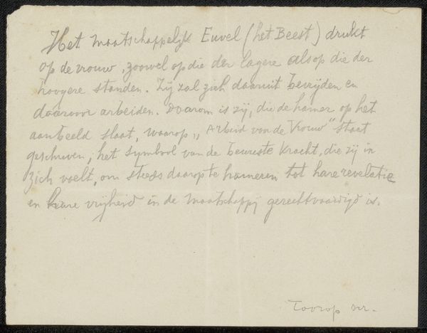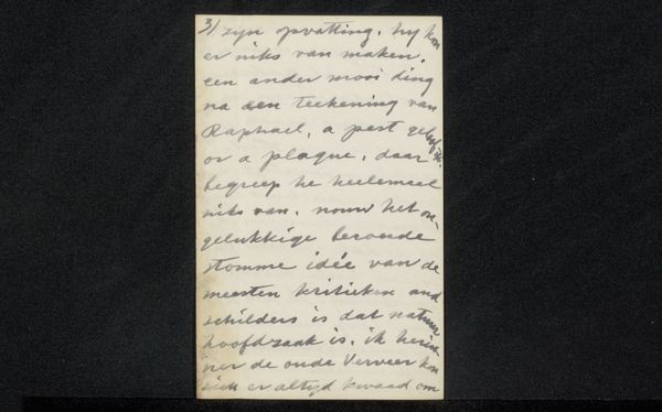 This letter to Ina van Eibergen Santhagens-Waller, created by Richard Nicolaüs Roland Holst, has such a clear and expressive hand. It makes me think about the act of writing as mark making. I love how the dark ink almost dances on the page. It’s easy to imagine the artist’s hand moving across the surface, each stroke a deliberate, yet fluid gesture. There's a rhythm to the curves and lines, a visual music that reminds me of gestural abstraction and automatic writing. You can almost feel the artist's thoughts flowing directly onto the paper. The varying pressure creates darks and lights, as though Holst is drawing as he writes. For me, it’s a reminder that art exists in so many forms, and that even the simplest act of communication can be elevated to something beautiful and profound. It reminds me of Cy Twombly's scrawls, or the intimate correspondence of Frida Kahlo. It's like catching a glimpse into the artist's mind, a quiet conversation across time.