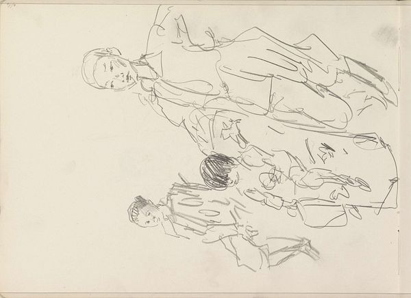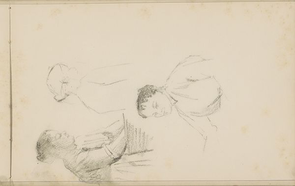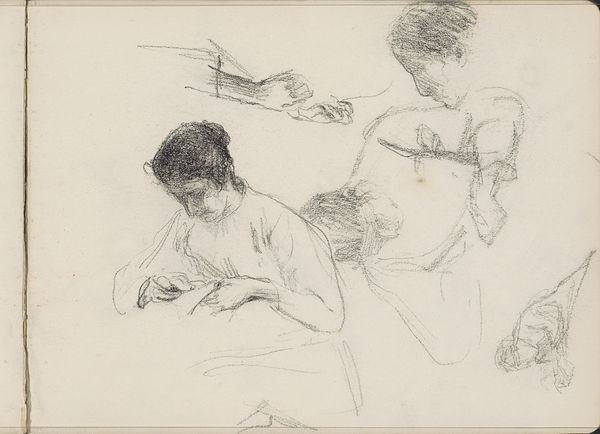 Bramine Hubrecht created this graphite drawing, likely in the late 19th century, capturing a scene thought to be from Cinderella. At first glance, the composition appears almost chaotic, with a cluster of young women rendered in a flurry of lines and shading. However, this initial impression gives way to reveal a carefully constructed arrangement. The figures, though densely packed, maintain their individuality through subtle variations in line weight and tonal contrast. Hubrecht’s use of graphite creates a soft, almost dreamlike quality, evoking a sense of intimacy and shared activity. We see not mere representation, but the essence of form. The composition, seemingly informal, cleverly guides the viewer's eye, inviting us to explore the relationships between the figures and the broader narrative context. Through this interplay of form and content, Hubrecht’s drawing transcends its illustrative function to become an exploration of the interplay between observation, memory and imagination. The drawing's structure invites ongoing interpretation, reflecting how the narrative functions aesthetically as part of a larger cultural dialogue.