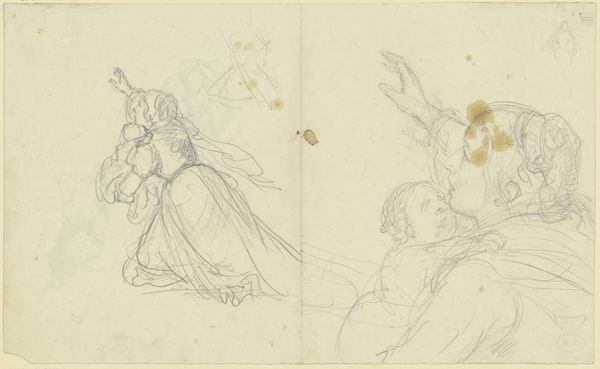 Théodore Géricault created "Studies of a Blacksmith and a Horse's Head with Sketches of Other Figures and a Rabbit" using graphite on paper. The composition is a collection of seemingly disparate images, a rabbit, blacksmith, and horse’s head, creating a sense of dynamic energy rather than static representation. Géricault masterfully utilizes line to define form and texture, from the muscular tension of the blacksmith to the soft fur of the rabbit. These studies offer insight into Géricault's working process, and his interest in capturing the essence of his subjects through keen observation and anatomical understanding. His work often explored the human condition, and these sketches are no exception. The convergence of various figures within a single frame destabilizes traditional artistic categories. Géricault challenges the viewer to question established meanings, and to engage with new ways of thinking about representation, and perception.