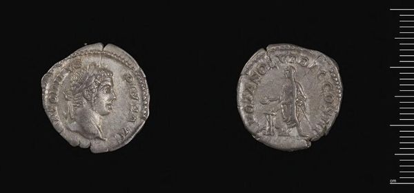 Curator: Here we have a denarius of Septimius Severus, currently residing at the Harvard Art Museums. Editor: It's so tiny! And yet, I feel the weight of empires just gazing at it. There's a solemn, almost burdened quality to that profile. Curator: Indeed. Coins, like this one, became potent symbols. The image of the ruler reinforced his power, and the deities depicted affirmed the cultural values. This particular coin depicts Septimius Severus himself. Editor: He certainly looks… serious. I wonder what it was like to hold power then, with that much scrutiny—almost like wearing your own face as propaganda. Curator: The imagery was deliberate, a careful construction. It evokes themes of strength, authority, and divine right—all packaged within this small, metallic circle. Editor: It’s funny, isn't it? How the grand narratives of power are often condensed into such portable, almost insignificant objects. It makes you wonder about our own present day tokens. Curator: Very true. This denarius is more than just currency; it is a condensed symbol of an era. Editor: Ultimately, it’s a small fragment that echoes the vastness of Roman history.