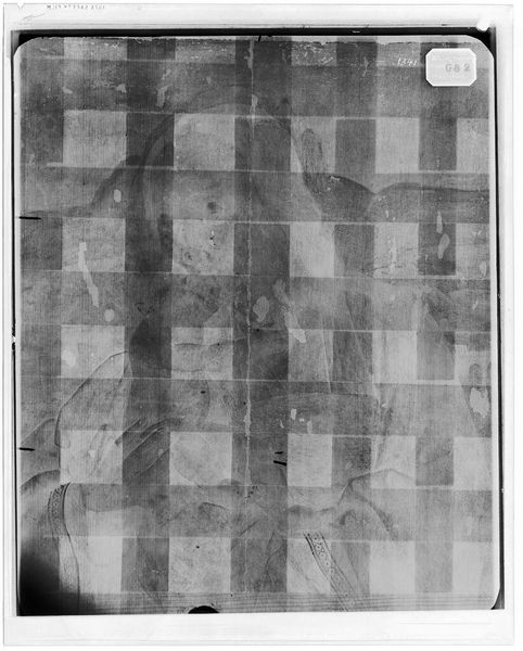 Curator: Here we have an X-radiograph of "Etude d'Italie" by Jean-Baptiste-Camille Corot, preserved at the Harvard Art Museums. Editor: It's strikingly abstract, a grid both obscuring and revealing what lies beneath. There's a strange tension. Curator: The composition, yes, is dictated by that grid—a series of squares creating a structured view into the painting's layers. Note how some squares are denser, revealing underlying forms. Editor: Almost like palimpsests. Symbols buried and resurfacing. Is this artist trying to send a message? Curator: Perhaps. Or maybe the X-ray simply reveals the artist's process, the materiality of the paint and canvas itself. Editor: It's a fascinating glimpse behind the surface, into the history of the artwork and the artist's creation. Curator: Indeed, it provides a unique perspective on Corot's work, one that transcends mere representation.