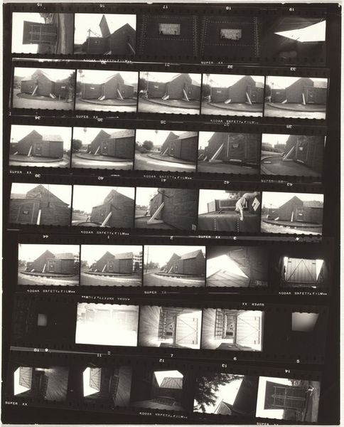 Editor: Here we have Robert Frank’s "Winter—New York City I" from 1953-54, a gelatin silver print, displayed as a contact sheet, if I'm not mistaken. It's a compelling array of images; quite a melancholic take on a cityscape! What story do you think it tells, looking at the strip in its entirety? Curator: Ah, Robert Frank...a kindred spirit, wrestling with the soul of a place! This isn't just a cityscape, it's a haiku about fleeting moments. What do you feel when you see the repetitive nature of the frame itself combined with his subjects and tones? Editor: It's a rhythm, I think. A slightly off-kilter rhythm. Is that intentional? Curator: I think Frank found the 'off-kilter' to be truer to lived experience than any glossy postcard view. He's hinting at isolation even amidst the urban bustle. The grey seeps into everything, obscuring grand monuments of human ambition. What is speaking most poignantly to you as you move from frame to frame? Editor: It’s got to be the windows at the end, looking in to… emptiness. What do you mean, by the haiku, exactly? Curator: Well, each frame is a verse, carefully composed, yet offering only a glimpse, not the whole story. It hints at narratives rather than stating them outright, very much like a haiku. Editor: That’s helpful – each is a piece to fit with others around it, giving a wider view in total. Very cool, I might have been tempted to find the ‘perfect’ photo on here. Curator: Exactly! It reminds us that life isn't about single perfect shots but rather the accumulation of fleeting impressions.