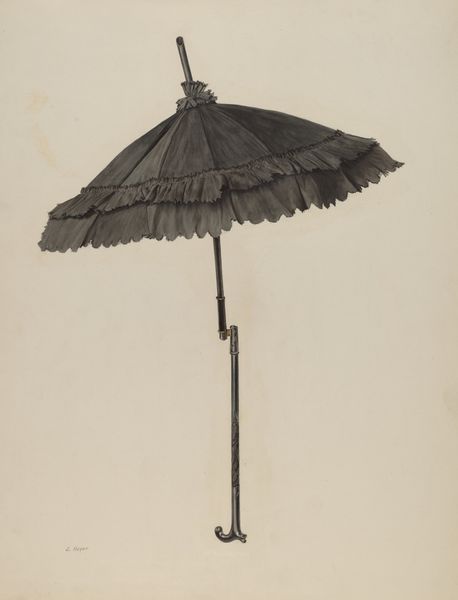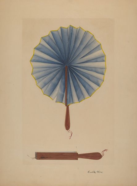 Editor: Here we have Jean Peszel's "Fan," created sometime between 1935 and 1942, using ink. There's something fragile and a little sad about it. What do you see in this piece? Curator: Beyond its immediate delicacy, I see a quiet rebellion. During that period, even the act of creating such an intricate and traditionally feminine object could be read as a subversive assertion of identity. How do you think societal expectations played a role in Peszel's choice of subject matter and medium? Editor: So, even a fan could be a form of protest? Curator: Absolutely. The fan itself, historically associated with female coquetry and demure communication, takes on a new layer of meaning when created during times of social upheaval. And the medium—ink—suggests permanence, a lasting statement rather than fleeting fancy. The meticulous detail and precision of the drawing are noteworthy too. Does that make you consider the idea of resistance, or something else? Editor: That makes sense. The fine detail and careful rendering give it more weight than just a simple depiction. The lace and flowers suddenly don’t seem so delicate. It feels like there’s an inner strength to it. Curator: Precisely. The flowers and lace could be read as symbolic armour. This adds layers of intersectionality. Peszel seems to subtly dismantle established societal constraints by embracing a historically “feminine” object. Considering Peszel’s "Fan" through this lens, what does this reveal to you about the artist's world and how she engaged with it? Editor: It reframes the everyday object as a quiet act of defiance and strength. It shows me that even the smallest actions can carry powerful messages. Curator: And that’s precisely how art can ignite transformative dialogues.