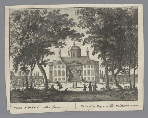 Editor: This is "Gezicht op huis Kronenburg," a landscape print made around 1836. It's a finely detailed engraving on paper, showing a grand house by a river. The textures in the trees and the reflection in the water are so delicate. What stands out to you when you look at this? Curator: I’m drawn to the material reality of this print. Think about the labor involved in its production. Engraving is a highly skilled craft. The social context here is interesting; who was this print made for, and how would it have been consumed? Was it a form of mass media in its time, accessible to a broader audience, or something more exclusive? Editor: I see what you mean. It’s easy to just admire the picturesque scene, but thinking about it as a crafted object changes things. What would the process have been like to create this image? Curator: Exactly! We have to consider the socioeconomic structures that made such production possible. The artist relied on other people – papermakers, engravers, distributors. And consider how the availability of paper influenced the scale and detail we see here. The artist isn’t just depicting a house; they are participating in a complex system of production and consumption. Editor: It’s almost like the house itself becomes a commodity, reproduced and distributed as an image. Did prints like this influence ideas about land ownership and social status? Curator: Precisely! The print serves as both an aesthetic object and a historical artifact. We can learn about landscape, art, and social values embedded in material objects. Editor: I hadn't considered how deeply intertwined art and materials are, revealing the larger socio-economic system they’re part of. Thanks! Curator: My pleasure! Thinking materially adds another crucial layer to our understanding.