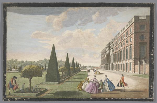 Curator: Sir Charles Lock Eastlake painted this view, The Colosseum from the Esquiline; he died in 1865. Editor: The Colosseum seems softened, almost as if nature is reclaiming it. Curator: Yes, the Colosseum is a very loaded symbol, isn't it? The weight of empire, gladiatorial spectacle, and even early Christian martyrdom. Eastlake's composition, though, almost domesticates the ruin. Editor: The trees and foliage certainly do. What about the lone figure in the foreground? Is she meant to represent the quiet perseverance of daily life against the backdrop of such a monumental, and violent, past? Curator: Possibly. The woman could symbolize the enduring spirit of the Roman people, or maybe just the simple fact that life goes on, even amidst ruins. Editor: Eastlake really invites us to consider how history shapes identity, and how we choose to remember—or not remember—the darker aspects of our past. Curator: It's amazing how the Colosseum continues to speak to us across centuries. Editor: Indeed, Eastlake's vision grants a serene, yet poignant perspective.