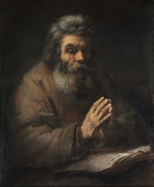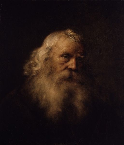 Curator: Here we have Portrait of an Old Man, rendered by a follower of Rembrandt, part of the Harvard Art Museums collection. The somber mood practically radiates from the canvas. Editor: It certainly does. And looking at this piece, I'm struck by the materiality of the paint itself. You can almost feel the impasto, the layering that gives the face so much depth. Do you think that the labor involved reflects the perceived social standing of the sitter? Curator: That’s interesting to consider. Rembrandt's studio system was influential. This work presents questions about artistic skill, social class, and the economics of portraiture at the time. Editor: Exactly, and how the art market influences not just what is produced, but who is deemed worthy of representation. This is an image consciously emulating Rembrandt. Curator: Yes, the painting allows us to analyze how artistic styles spread, and how workshops functioned to create a recognizable, marketable aesthetic. Editor: It all really brings to light the material conditions and artistic labor behind art production, which is often overlooked. Curator: A powerful reminder that art always exists within a social and economic framework, one that this portrait elegantly reveals.