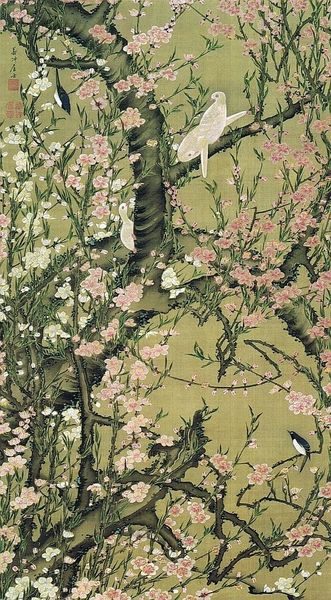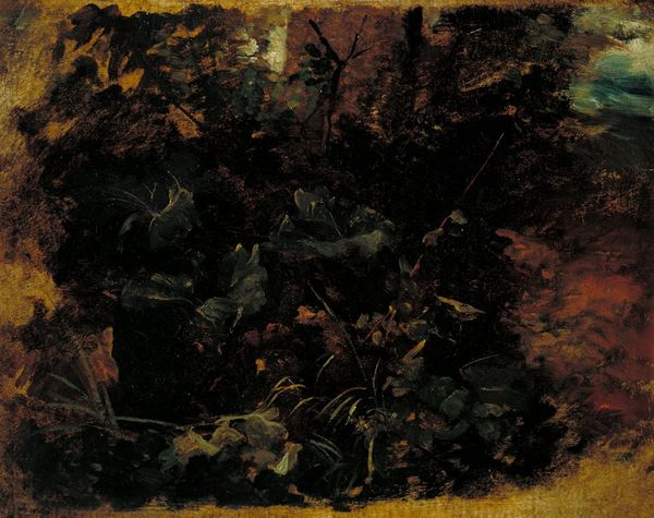 Curator: Welcome. Before us is Lucian Freud’s “Two Plants,” rendered in oil paint in 1980. Editor: I'm struck immediately by the tension in the composition. The delicate upper foliage contrasting sharply with the bolder, almost aggressively rendered leaves below. Curator: Indeed. Note how Freud has eschewed idealized botanical depiction, focusing instead on a close examination of each leaf’s individual form, color, and texture. The visual language conveys almost hyper-realism. Editor: But the texture speaks of its own labor! Consider Freud's specific brushstrokes here, almost sculpting the surface with the oil paint to render what must have been the arduous work of seeing and painting such detailed tangles of leaves. What are the literal physical costs for such detailed paintings, one might ask. Curator: Certainly. While his realist style conveys the density and tactile presence of nature, it simultaneously subverts notions of the pastoral. Where would you place such naturalism in art history? Editor: A relevant question. Looking at the earthy tones, one might initially mistake it for academic landscape art. And the plants are front and center rather than relegated to scenery in the background. You see labor elevating these supposedly simple, ordinary specimens and offering them up as fine art. Curator: Observe Freud’s masterful manipulation of light and shadow. Each plant is revealed as an isolated form as it interacts in concert with other forms within the pictorial space, thus presenting us an evocative tableau. The very act of seeing and painting this reality becomes a philosophical proposition of reality versus representation. Editor: Though it evokes some connection with place, its materials—canvas and oil paint—were of his moment, and his method reveals a contemporary social dimension through an intense and exhausting approach, setting him apart from merely traditional craft. What value then does that bring in looking at plants as portrait subjects? Curator: The work suggests the complexities inherent in perception, and the impossibility of any single, objective rendering of reality. Editor: I see these two mundane plants becoming elevated through hours upon hours of invested care and effort. Curator: Ultimately, “Two Plants” challenges viewers to reconsider how they observe the world around them. Editor: It underscores the value in carefully and intentionally looking at that which we often deem common.
