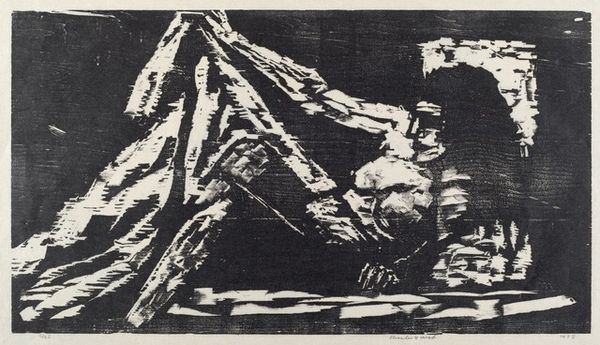 Editor: Here we have Ossip Zadkine’s “Untitled (The notebooks idealistic)” from 1921, created using woodcut and ink. The high contrast and starkness of the woodcut process create a really interesting mood… slightly melancholic, maybe? How do you interpret this work? Curator: It's a compelling image. For me, Zadkine's piece resonates with the social and intellectual climate of the early 20th century. Consider the title "The notebooks idealistic"—do you see that as perhaps a commentary on the post-war disillusionment, a yearning for a better world juxtaposed with the harsh realities represented by the sharp lines and heavy blacks of the woodcut? How might the abstraction contribute to this sentiment? Editor: I didn't consider that! It’s interesting to think about how the abstraction almost hides the figure, making it more universal. It makes me think about broader anxieties rather than one person's struggles. Curator: Precisely. Think about Cubism’s fracturing of form as a parallel to the shattering of pre-war social structures. Could Zadkine be using this visual language to question traditional representations of the human form, and, by extension, challenge established power dynamics? Who had the privilege to be depicted traditionally, and who was excluded? Editor: So, the choice of woodcut, known for its bold contrasts, reinforces this challenge? It almost feels like a visual representation of social upheaval, especially through the focus on starkness and simplicity. Curator: Exactly. By simplifying and distorting the figure, Zadkine is not just depicting a person but perhaps interrogating the very concept of representation, asking who gets to be seen, and how, in a rapidly changing world. Editor: That gives me so much to think about in terms of connecting artistic technique to broader social questions. I see this piece in a new light. Curator: Absolutely. Art gives us opportunities to reflect upon history, power, and identity.