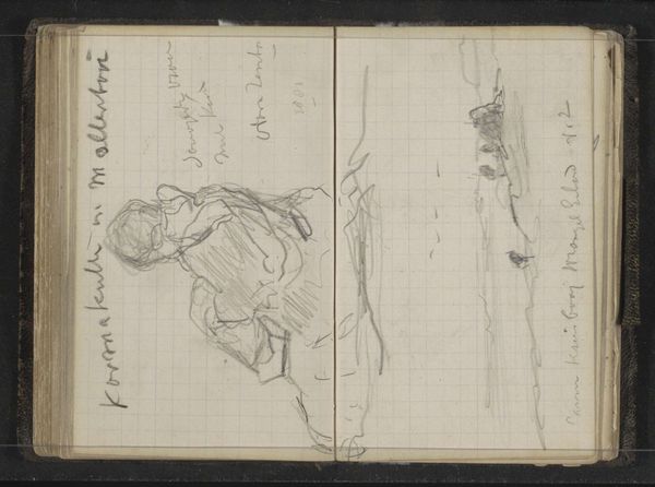 Editor: Here we have "Two Samoyeds in a Rowing Boat," an ink and watercolor sketch by Louis Apol, created sometime between 1880 and 1888. The aged paper adds such a sense of history. What stands out to me is how raw and immediate it feels, like a captured moment. What do you see in it? Curator: Looking at the sketch through a materialist lens, I am most intrigued by the means of its production and the social context in which it was created. Apol used readily available materials like ink, watercolor, and paper to produce this quick sketch. What impact might mass production of sketchbooks during that era have had on art practices, like sketching *en plein air* or creating private studies? Editor: That’s interesting. I hadn’t considered the industrial aspect. It makes me think about accessibility. Would art have been more readily made by all classes? Curator: Exactly! This sketchbook drawing blurs the traditional hierarchy between 'high art' and 'craft.' It begs the question, how do the conditions of artistic production—access to materials, available time, the intended audience—shape the final outcome and its perceived value? Could you compare this to a formally commissioned artwork and how labor shapes its value? Editor: I can see that. Maybe the freedom afforded by accessible materials influenced a loosening of style? Perhaps the spontaneity here is connected to that accessibility? Curator: Precisely! And who were the Samoyeds, and what would be their perception of Apol's rendering of them. The choice of subject matter—two dogs in a rowing boat—further encourages one to look at Apol’s piece as situated within social context, consumption, and accessibility. Editor: It’s so fascinating how thinking about the materials themselves opens up new perspectives on the art! Curator: It shifts the focus from the finished product to the artistic process and social underpinnings. Food for thought!