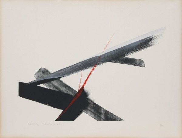 Toko Shinoda made this work, "Blessing", with ink, and maybe some watercolor, using both sumi techniques and modernist abstraction. There's a real sensitivity to the material here, in the way the ink bleeds and feathers on the paper. The composition is sparse, reduced to just a few bold strokes and shapes. I love the way she balances the stark black of that swooping diagonal with the soft, smoky grays elsewhere. It's a masterclass in contrast. Look closely at the top of the grey form – see those thin, spidery lines? That’s where the brush barely touched the paper, a ghost of a mark. For me it’s this combination of strength and fragility that really sings. It reminds me a little of Franz Kline, maybe, but with a lightness and grace that's all Shinoda's own. In art, as in life, things don't have to be one way or the other. There's always room for nuance, for a little bit of both.