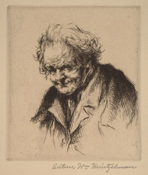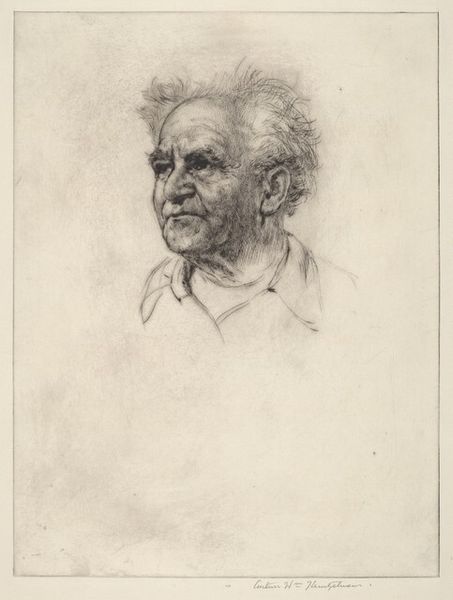 Editor: Here we have Arthur William Heintzelman's 1959 pencil drawing of David Ben Gurion. There’s something almost ghostly about the texture created by the graphite. What catches your eye when you look at it? Curator: For me, it's the sheer process that interests me. We’re presented with this immediate connection to the hand of the artist, a direct trace of labour made manifest through a readily available, inexpensive material. Pencil on paper, it’s incredibly democratic in its availability. Think of the economic implications! Who had access to portraiture, and through what means? Editor: That’s interesting, I was focusing on the likeness and the subject. Does the choice of graphite then democratize portraiture? Curator: Exactly! Before photography became widespread, portraiture was largely the domain of the wealthy who could afford painted commissions. Drawings like this, rendered in humble materials like graphite, begin to open up that world. And we can think about how graphite itself is mined, processed, distributed... It opens up a whole chain of material production. Was Heintzelman perhaps commenting on the accessibility of leadership, portraying this key historical figure through an accessible medium? Editor: That makes me consider the accessibility of the image versus the sitter. I wouldn’t have thought about it that way! So, the materials themselves hold meaning, shaping the viewer's understanding. Curator: Precisely. It's a reminder that even the simplest artwork involves layers of social and material histories that inform its meaning. The perceived “simplicity” of the medium encourages viewers to reconsider accessibility in portraiture and consider its material origins and social context. Editor: It makes you wonder what other messages we miss by not looking more closely at the 'how' of art.