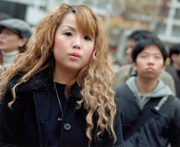 Editor: This is Leo Rubinfien’s gelatin silver print, "Tokyo, 2002, at Shibuya Station," dating sometime between 2002 and 2014. It strikes me as an intensely observant street photograph. What catches your attention in this piece? Curator: What I find most compelling is how Rubinfien captures the social fabric of Tokyo through the lens of its public spaces. Shibuya Station, as a major transit hub, becomes a stage for observing contemporary Japanese life. Notice how the individual is framed within a crowd, a recurring theme in street photography. It makes you wonder, doesn't it, how public spaces shape personal identity and vice versa. Editor: It does. And I notice it's black and white, which gives it a timeless feel, almost documentary. Was he making a specific statement about Japanese culture? Curator: Absolutely, that aesthetic choice lends the work a documentary quality that's steeped in history. More generally, black and white simplifies and flattens and encourages looking, even analyzing. However, instead of simple social commentary, I suggest Rubinfien gives us more ambiguous view. By focusing on the expressions of those who occupy public space, he is showing an intimate look into Japanese culture. This departs from images manufactured by external marketing pressures, and encourages thinking about this image's context of production. Editor: That’s fascinating. The anonymity of the crowd and her own individuality highlighted within it… almost speaks of modern alienation and also community. Curator: Exactly! Consider also the influence of figures like Daido Moriyama, known for his gritty and high-contrast street photography in Japan, and consider how different are Rubinfien’s treatment of analogous settings. I find it also highlights how socio-political environments enable different forms of expressions. Editor: So, beyond its aesthetic qualities, this image really opens a window onto a specific moment and place in time and highlights artistic vision of different historical figures? Curator: Precisely. It's not just a photograph, but a visual document reflecting the complex interplay between the individual and the collective in urban Japan, positioned to be examined along a variety of viewpoints. Editor: I'll never look at a street photograph the same way. Thanks!