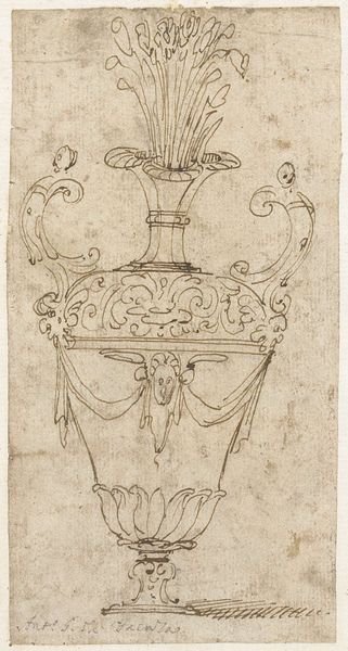 Editor: Here we have Nicolas Noël Boutet’s "Design for the Decoration of Firearms," created between 1772 and 1830. It's a pencil and watercolor drawing on paper featuring a decorative urn with birds, sketched in such precise detail, yet I find myself wondering, was this design ever actually used? What stands out to you? Curator: It’s interesting you pick up on the unrealized aspect of the design. Boutet was the director of the Versailles arms manufacture. Consider the role of decorative arts in solidifying power during this era. Items, including firearms, were more than functional; they were symbolic representations of wealth and authority. This sketch offers a peek into the industry. Does this imagery portray militaristic power, or is it intended for other audiences? Editor: I see your point about the symbolism! The birds and flowers seem more aligned with wealth, perhaps designed for a specific clientele who want to portray wealth through more subtle and less threatening visuals than pure militaristic power. Curator: Precisely! And who consumed these displays of power and luxury? Aristocrats, yes, but also, increasingly, the rising bourgeoisie seeking to emulate aristocratic tastes. Think about the role the museum plays even now – does displaying the ‘Design’ outside of the completed firearm it inspired perhaps alter its intention? Editor: So, the context shifts from a functional, symbolic object to an art object for contemplation. It makes me think about how the design itself, intended for firearms, almost becomes a commentary on status and power, and museums actively enhance this function through careful selection. Curator: Indeed. The display reframes its narrative and reinforces, perhaps even creates, its artistic and social significance. A fascinating cycle, wouldn’t you agree? Editor: Absolutely, it's given me a new perspective to consider regarding context when it comes to displays of art.
