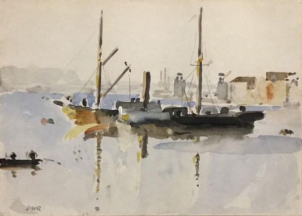 Burhan Dogancay captured Honfleur with watercolor, depicting a serene harbor scene. The masts of the boats reach upwards, framing the town's architecture in the background. The harbor— a timeless motif— carries echoes of departure and return, adventure and safety, shaping our collective consciousness. Consider the boat. As a vessel navigating the waters, it is a potent symbol found across cultures and throughout history. From ancient Egyptian funerary boats guiding souls to the afterlife, to Viking longships carrying warriors to new lands, the boat represents transformation and transition. In Dogancay's rendition, the stillness of the boats creates a visual metaphor for the human soul in repose, contemplating its journey. The water further enhances this sense of reflection. It mirrors the world above and hints at the depths below, symbolizing the conscious and subconscious aspects of existence. The muted tones and soft washes evoke a dreamlike quality, blurring the line between reality and memory, and engaging viewers on a deep, subconscious level. The harbor, the boats, and the water – all unite in a non-linear dance, evolving through time while echoing the depths of the human spirit.