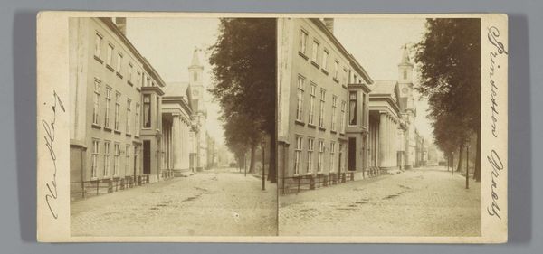 Curator: Ah, yes, this is "Koningsbrug in Rotterdam," a gelatin-silver print attributed to Pieter Oosterhuis, taken sometime after 1860. It resides here at the Rijksmuseum. What are your first thoughts? Editor: Austerity. An echo of neoclassical rigor, bleached and softened. That endless cobblestone street almost feels… melancholy. Curator: Interestingly, this melancholy you speak of may have been captured with the aid of albumen—egg whites were historically used in coating the photographic paper. Beyond the fascinating chemical process, I find this photo so evocative because it feels like stepping back in time. The light, the textures... Rotterdam as it once was. Editor: Rotterdam's story is often told through its reconstruction, but here, it's captured right before a massive reshaping, a literal paving over. The heavy masonry, those symmetrical sentry boxes... everything screams empire, capital, industry on the rise. Curator: True, the photograph definitely captures that spirit of ambition and burgeoning industrialization. The Koningsbrug, as the focal point, isn’t just a bridge, but also a symbol of connection and progress. Editor: But for whom was all this progress? That's what the stark contrast between the grandeur of the bridge and the anonymous figures walking it makes me wonder. Whose labor built this city? Where are the docks, the trade—all the bustle that must have existed just beyond the frame? The visible infrastructure always relies upon what goes unacknowledged. Curator: I hear your point. Maybe that’s where its staying power resides— the question of who benefits, which remains timeless. You notice how crisp everything appears in spite of its age? Oosterhuis clearly demonstrates a mastery of the photographic process. Editor: Agreed, the sharpness is startling. Yet I wonder if that crispness is, itself, a way of sanitizing a messier, more socially complex reality. Photography then—as now—selected and framed narratives about progress and public works. The question becomes, who controls the lens? Curator: Perhaps the most powerful question we can ask of any artwork, isn’t it? Thank you, I find that reframing deeply helpful. Editor: My pleasure. Every photo is more than the sum of its chemicals, it seems.