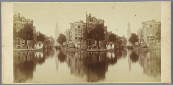 Curator: This gelatin silver print, likely taken between 1850 and 1900, captures the Galgewater in Leiden. The photograph is credited to Jan Goedeljee. Editor: It has such a stillness to it, doesn’t it? The reflections on the water are mesmerizing, mirroring the buildings lining the canal. There’s something deeply peaceful, yet perhaps also slightly melancholic about the scene. Curator: Early photography like this, during the Pictorialism movement, sought to elevate photography to the level of fine art. This period grappled with the question of whether a photograph could be art. How could it represent social change? Editor: Right, and beyond just mimicking painting, it's fascinating how the city becomes a character itself. Leiden's identity, the way its inhabitants lived along these waterways, becomes preserved. Did these spaces cater equally to all inhabitants or did class dynamics impact the river access? Curator: Waterways were vital arteries for trade and transport, reflecting social strata but also shaping urban planning. Photographic societies promoted these kinds of realistic portrayals and their wider cultural values. Editor: The tones emphasize a certain muted elegance; the water looks both inviting and impenetrable. I wonder about the untold stories that took place here, and how much control people had within this growing industrialized cityscape. Curator: Indeed. Considering its time, we see this realism also offering a window into the social changes experienced with increased commerce and development during the latter half of the 19th century. It invites a discussion around identity, gender, and social hierarchies. Editor: Reflecting upon it, it feels almost timeless; that the artist not only recorded a time, but preserved a quiet, potent intersection between water, architecture, and humanity. Curator: And for that reason, "Gezicht op het Galgewater te Leiden" represents a powerful study of evolving urban life in 19th-century Netherlands, from societal to purely artistic values.