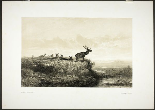 Curator: Ah, yes. Here we have François Grenier's "Hunter Stumbling on a Narrow Bridge," likely created sometime between 1831 and 1846. It's a watercolour painting, and it exudes a particular, well, vibrancy. Editor: My first thought? Chaos in watercolour. A hunter in mid-tumble, rifle askew, dogs scattering, and the whole scene feels ready to plunge into that serene, still water. Curator: Exactly! Grenier captures a fleeting moment of disorder within an otherwise ordered, Romantic landscape. This work, on view here at the Rijksmuseum, is categorized as genre painting and embodies both the romance and reality of the hunt. Editor: The humour is lovely. I can almost hear the splash and the startled yelps. Did wealthy city folk laugh about seeing this? It presents this narrative: despite our so called civility and refined art that depicts order, the man falls anyway. Curator: Genre painting of the time served varied purposes—moral instruction, social commentary, escapism, or pure entertainment. With expanding cityscapes, wealthy elites would idealize the notion of a rural escape, while at the same time mocking some perceived mishaps or discomforts that arise from living such a lifestyle. The landscape in these types of works were less about accurate representation and more about conveying an atmosphere, like in a work of Romantic poetry. Editor: The composition pulls the viewer in. Even with the delicate strokes of watercolour, it feels full of movement. Curator: Yes! It’s a deceptively simple scene. The artist skillfully uses light and shadow to heighten the drama. We are left wondering: what comes next? What about those poor hounds! Editor: So well captured—a brief reminder that perfection is boring, really. Art needs this vulnerability, even, or perhaps especially, in art about fancy things. It is not the fall, it is the landing! I'll remember that today. Curator: Well said. Grenier offers not just an image, but a suspended moment ripe with narrative and emotional texture. He truly makes you wonder if this whole scene plays into notions about social and class identities of the period.