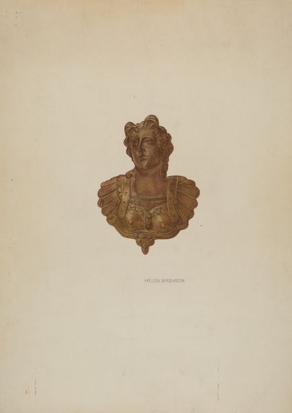 Editor: So, this is Helen Bronson's "Drawer Pull" from around 1941; it appears to be a drawing, perhaps in pencil or a similar medium, of a metal drawer pull. What immediately strikes me is its ornate detail - almost baroque. It’s making me think about the elegance of everyday objects. What captures your attention in this drawing? Curator: Well, the drawing breathes life into something often overlooked. I find it fascinating that Bronson chose such a humble object, imbuing it with a sort of…quiet nobility. It makes me think, doesn’t it, about the beauty hiding in plain sight. Does the detail almost become its own abstract design? Editor: Definitely. It’s as if the drawing is elevating the drawer pull to the status of art itself, transforming it from merely functional to beautiful. Curator: Precisely! I almost wonder, was it perhaps a comment on mass production, the artist elevating handmade items in the machine age? Is that aging bronze starting to feel very precious now? Editor: Yes! Now I’m thinking about the artistry inherent in design. That, plus how an artwork can change our perception of the ordinary, something so practical, something so beautiful. Thank you! Curator: Absolutely! Perhaps seeing the artfulness within our surroundings is more precious than any drawing.