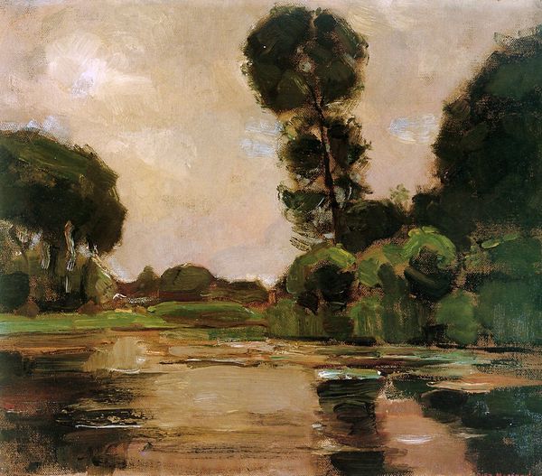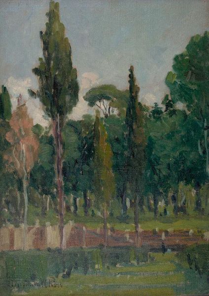 Adolf Hölzel painted these silver poplar trees with oil on canvas in the late 19th or early 20th century. Trees have long held symbolic weight in the human psyche. These aren't mere botanical studies; they are vessels carrying cultural memory. Recall the tree of knowledge in Eden, or the sacred groves of ancient Greece—places of wisdom and divine presence. The verticality of trees, reaching skyward, often symbolizes the connection between the earthly and the divine. We see this echoed in the "axis mundi," the world axis, depicted in various cultures through trees or poles, linking different realms of existence. The emotional pull of this image lies in its evocation of nature's enduring presence. The image resonates with our own subconscious understanding of the natural world as a source of solace and continuity. Notice how the rhythmic arrangement of the trees creates a sense of harmony, engaging us on a level that transcends mere visual appreciation. The symbolism of trees progresses cyclically, resurfacing in art and myth across time, continually adapting to new cultural landscapes.