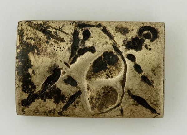 Editor: This is a reproduction of a Gold Mycenaean Bead, made by Emile Gilliéron or his son. It's incredibly small, and depicts two lions. What strikes me is the raw power it conveys, even at this scale. How do you interpret this work? Curator: The lions evoke potent symbols of power and protection deeply embedded in Mycenaean culture. Do you notice how they are mirrored? This symmetry often signifies balance, order, or even duality. Editor: So, were lions commonly used symbols? Curator: Yes, images of lions were strategically placed in architecture and portable objects to protect palaces and tombs, signifying the strength of the rulers and their divine connection. Editor: That's really interesting. I never would have thought about the symmetry implying something so important. Curator: Understanding these visual languages unlocks a deeper appreciation for the cultural memory embedded within the artwork.