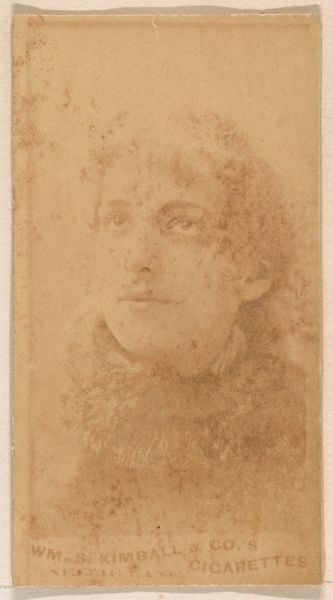 Editor: This is "Mlle. Waldro," a drawing, print and photograph made by Allen & Ginter sometime between 1885 and 1891, part of their Actors and Actresses series of cigarette cards. It feels delicate, almost faded with time, a whisper of a bygone era. What stands out to you when you look at it? Curator: What immediately strikes me is how it captures a specific moment of cultural fascination with celebrity. These cigarette cards, ubiquitous at the time, were vessels carrying images of popular figures. Note the profile view, reminiscent of classical cameos – immediately elevating the actress's status. What emotions do you think that choice of presentation elicits? Editor: It gives her an air of importance, maybe even mystery, presenting a carefully constructed public image. The profile limits what we know of her, but elevates her form. It’s also interesting how consumer culture elevated actors and actresses. Did the public feel as though they knew performers, due to increased exposure? Curator: Exactly! And it's precisely that constructed image that holds so much weight. The proliferation of these images created a collective idea, a shared memory of who Mlle. Waldro was supposed to be, perhaps eclipsing the reality. The muted tones and slightly ethereal quality add to this sense of idealized, almost mythological representation. Do you think it differs much from our engagement with celebrities today? Editor: Hmmm, there's definitely a difference in accessibility. Today, we have so much more 'access' via social media, reality tv, and candid photography, which may puncture this elevated celebrity persona that you describe. With the portrait of Mlle. Waldro, she appears much more remote and intangible. Curator: And that distance is key! It speaks to the power of symbols, how even a simple image can create lasting cultural narratives and fuel desires for an experience of fame and celebrity. Editor: It’s fascinating to consider how these seemingly simple portraits reflect our ever-evolving relationship with fame and visual representation. Curator: Indeed. They remind us that images are not neutral; they are active participants in shaping our understanding of the world.