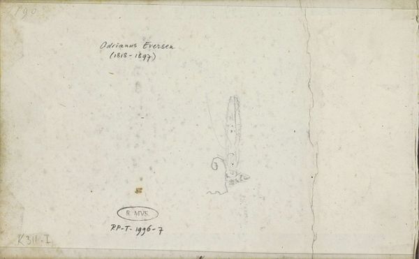 Curator: So, here we have George Hendrik Breitner’s "Studieblad," dating from around 1871-1876, housed right here in the Rijksmuseum. It appears to be a sketchbook page, rendered with light pencil work on aged paper. Editor: Yes, that's right! My first thought is just how simple it is. It’s so minimal, almost ephemeral. What strikes you when you look at this sketch? Curator: The directness. There's no pretense here. Breitner uses the sketchbook, this readily available and relatively inexpensive material, almost as a laboratory. Look at the hasty inscription, the rapid linework...it emphasizes the means of artistic production, turning away from established fine art practice. Does that provisionality challenge how we valorize a finished, framed oil painting over something like this? Editor: It does. I never really thought of sketchbooks as having this much value, especially displayed here in a museum setting. Does the subject matter affect that, too? Curator: In a way. It’s easy to overlook them. He seems to be noting measurements of objects, not producing an idealized depiction. I would argue it’s because it reflects artistic labor, its immediate engagement with materiality that many people might not consider “art.” What impact do you think the use of inexpensive paper has on our appreciation? Would this hold the same intrigue if it were on vellum? Editor: I guess I would assume a vellum sketch to be “more important.” Seeing it this way, though, I notice the everyday context more. It gives a great sense of immediacy to Breitner’s process. I'll have to rethink how I engage with simple pencil drawings from now on. Curator: Exactly. We see the social implications of cheap materials, the ability of a working artist to quickly explore ideas using what’s at hand, moving beyond bourgeois demands for idealized portraiture.