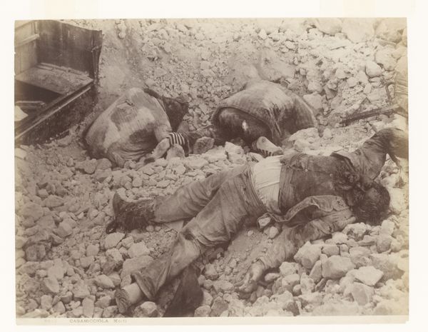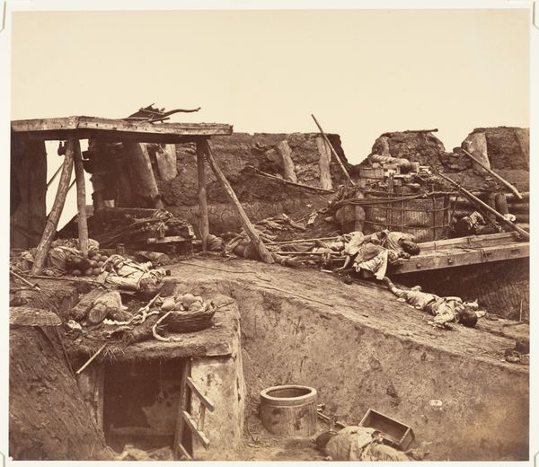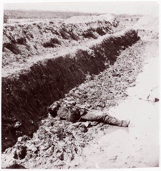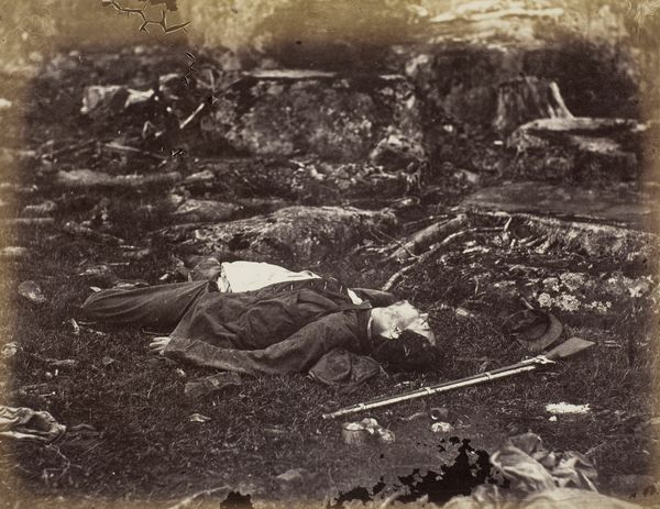 This photograph, taken by Thomas C. Roche during the American Civil War, shows a dead Confederate soldier at Fort Mahone. The image's power lies in its stark realism, achieved through the then-emerging medium of photography. Unlike romanticized war paintings, this image presents the brutal reality of industrialized warfare. Look at the rough texture of the earthworks, contrasting with the smooth, cold metal of the soldier's rifle. Consider the labor involved in creating both the defenses and the weapons, all products of a society increasingly driven by industry and mass production. Photography itself was becoming industrialized, enabling widespread dissemination of images like this one, influencing public opinion and shaping historical memory. This photograph serves as a potent reminder of the human cost of conflict, urging us to reflect on the materials, processes, and social forces that shape our world.