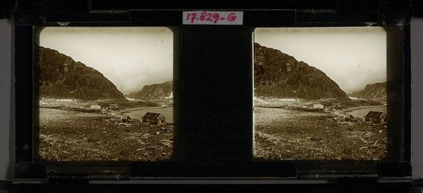 Editor: Here we have an intriguing gelatin-silver print, “Paarden en een tent in heuvelachtig landschap, Noorwegen” – Horses and a Tent in a Hilly Landscape, Norway – made sometime between 1893 and 1923 by an anonymous artist. The stark monochrome and composition of this almost faded image, evoke a sense of stark beauty to me. How do you interpret the visual dynamics at play in this composition? Curator: Indeed, the strength here resides within its formal relationships. Note how the placement of the tent creates a distinct contrast against the blurred distant mountains. It is the stark white geometric form amid the organic landscape and its value as an eye-stopping element within the visual space. Editor: That's fascinating, the sharp contrast does pull you in. What about the animals? Curator: Yes, they are of secondary importance structurally speaking, but no less vital, the artist deliberately positions the cluster of animals, adding an element of balance that prevents the white of the tent from becoming overwhelming. The contrast of their dark shapes gives them structural weight within the frame. It also works horizontally connecting all elements together and emphasizing the landscape itself as a connecting value. Editor: I see it now. It’s interesting to think about how formal elements create balance within an image even one as seemingly simple as this. Thanks. Curator: You're welcome. Notice how the materiality of photography, gelatin on silver, in its aging imperfections, brings unique textures and tone creating the work’s final state which carries a kind of nostalgic narrative power.
