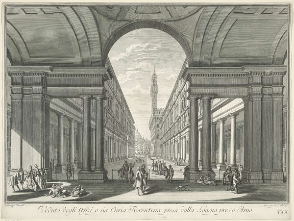 Giovanni Battista Piranesi created this etching of the Basilica of St. Paul outside the Walls in Rome. Immediately striking is the manipulation of perspective and scale, creating a dizzying effect. The architectural grandeur inspires awe, but the figures of the people appear diminutive, almost lost within the vastness of the basilica. Piranesi masterfully employs line and shadow, crafting a complex interplay of light and depth. The repetitive, almost rhythmic, colonnades draw the eye deeper into the composition. This architectural rendering does more than just depict space. It destabilizes our sense of scale, reflecting philosophical questions about humanity's place within the world. The basilica's interior is rendered in a way that emphasizes its imposing structure, perhaps echoing contemporary debates about power and representation. This etching is a powerful example of how an artist can use formal elements to engage with broader cultural and intellectual themes.