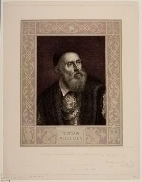 Editor: This is a print of Benvenuto Cellini by Samuele Jesi. I'm struck by the textures, especially the intricate details in his beard and the folds of his hat. What do you see when you look at this portrait? Curator: Note how the engraver Jesi employs hatching and stippling to modulate light and shadow. The tonal gradations suggest a deep understanding of form. Editor: So, it's more about the technique than just a likeness? Curator: Precisely. Consider how the composition directs our gaze towards Cellini's face, the true subject of this formal investigation. Jesi's virtuosity invites contemplation on the very nature of representation. Editor: That's a different way to look at portraiture; thanks for illuminating the engraving style. Curator: My pleasure. I enjoyed discussing Jesi's technique.