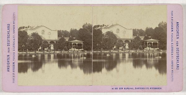 This stereoscopic card, showing the Kuurhotel in Liebenstein, was made by Hermann Selle, and published by E. Linde & Co. It's a small object, made of card stock and photographic emulsion, made for viewing with a special device. The twin images give the illusion of three-dimensionality. The stereoscope was a popular form of entertainment in the late 19th century, and mass produced. This one provides a picturesque view of a health resort, promising relaxation and rejuvenation. The making of the object involved multiple processes, from photography to printing and assembly, and was geared for mass consumption. The stereoscopic card speaks to the commodification of leisure and the experience economy, creating an idealized image of escape from the industrialised world, while at the same time relying on the very processes of industrialisation to be made and sold. Considering materials, making, and context is critical to understanding this artwork and challenging traditional distinctions between fine art and craft.