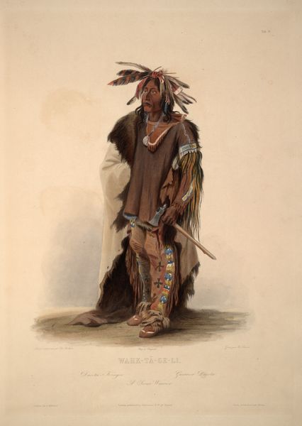 This is Karl Bodmer's aquatint engraving, Pachtuwa-Chta, an Arrikkara Warrior, created as part of his travels in North America. Bodmer, a European artist, captured images of the people he encountered, reflecting both his artistic skill and the colonial gaze of the 19th century. The portrait captures Pachtuwa-Chta in traditional attire, adorned with feathers and intricate beadwork. Yet, beyond the aesthetic representation, we must consider the historical context. As an outsider, Bodmer's depiction is inevitably filtered through his own cultural understanding, raising questions about authenticity and representation. Whose story is being told, and how accurately? Consider the power dynamics at play: a European artist capturing the image of an Indigenous warrior during a period of immense cultural disruption and displacement. The very act of documentation becomes a complex negotiation between cultures, histories, and identities. How does seeing this image today affect our understanding of the past and our present?