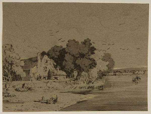 David Young Cameron created this etching, "Ledaig," using fine lines to capture a serene landscape. The composition is dominated by a vast sky, occupying the upper portion of the plate. This accentuates the scene's tranquil, spacious quality. Cameron’s technique uses a structural approach. See how he methodically organizes each element, from the positioning of the buildings to the subtle rendering of the distant hill. Each structure appears as a distinct form, contributing to an overall harmony. The buildings are not merely objects but rather function as structural components within the visual field. Consider the use of light and shadow. Cameron uses a delicate interplay to define form and space, adding depth. This meticulous approach reflects a concern with the underlying architectural qualities inherent in the landscape itself. The artist invites us to decode the structural logic through a semiotic system, where each line, shadow, and shape contributes to an overarching narrative of spatial relations.