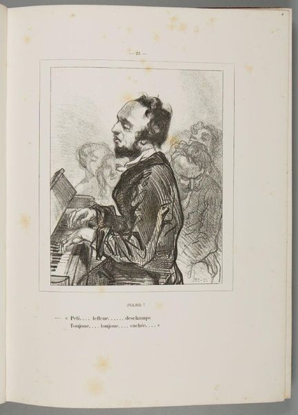 This lithograph of a ‘Zingende Pianist’ was made by Paul Gavarni, sometime in the mid-19th century. Lithography is a printmaking process using a flat stone or metal plate, and is traditionally used to create prints with a similar look to drawings. In this case, the artist has captured the intense expression of a musician as he plays, surrounded by his audience. The medium allowed the artist to capture nuances of expression, and it's fascinating to consider the social context of this image. The print would have been relatively affordable, and allowed a wider audience to engage with art. It speaks to a growing middle class with an interest in cultural pursuits, but also to the labor involved in producing art for this market. Paying attention to the materials and making of this lithograph helps us understand its place in society, reminding us that art is always connected to the world around it.