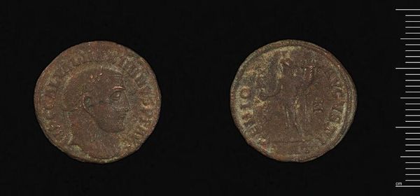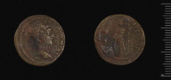 Editor: Here we have an Antoninianus of Probus, a small coin weighing just over 4 grams. The portraits on both sides are worn, yet still legible. What do you see in this piece? Curator: The very circularity of the coin underscores its function as a medium of exchange. Note the bas-relief portrait of Probus, set against the legend which frames it. Editor: And the figures on the other side? Curator: Their placement echoes the emperor's portrait, creating a visual symmetry. Consider how the materiality of the coin itself—its metallic composition and worn texture—speaks to its history of circulation. Editor: So, it's not just about the images, but also the object itself. Curator: Precisely. The coin's form and condition are integral to its meaning. Editor: I'll remember that. Thanks.