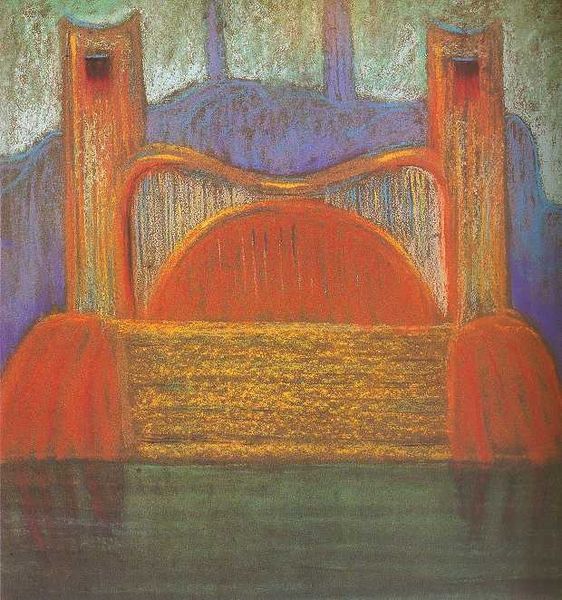 Enzo Cucchi made 'Crollava', using paint on canvas. The way the pigment is brushed, dabbed and smeared onto the canvas makes it feel really immediate. The making of the image feels like a way of thinking, and seeing. The tones in the painting are murky but they are luminous at the same time, which is a contradiction, but totally intentional. The paint feels thin and liquid, brushed on and then scrubbed back in places. Down in the bottom right corner there is a tiny patch of bright yellow which really makes the eye bounce around, and suggests a light which is both natural and dreamlike. I see an echo of Giorgio de Chirico here, in the symbolic, haunted landscape. But Cucchi seems looser, less formal; it’s the feeling that counts.