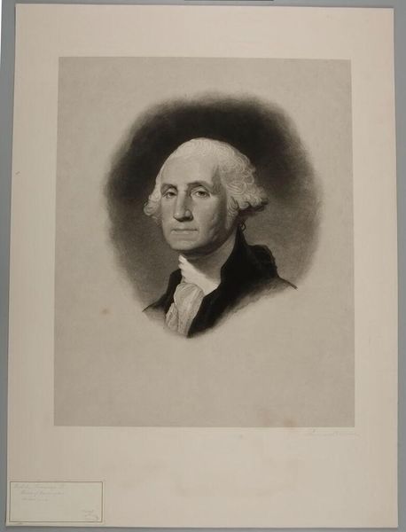 Editor: So, here we have a print from 1893 titled "President George Washington" by Mathevon et Bouvard. It's interesting how they chose to depict him; almost…serenely detached. What symbols or meanings do you think the artists were trying to convey here? Curator: That detachment you observe is key. Think about the symbols normally associated with power. What's absent? We see no crown, no scepter, no military garb in this portrait. Yet, he undeniably commands attention, doesn’t he? This portrait operates within the Neoclassical tradition, so its symbolic language is about rationalism and civic virtue. Editor: Yes, the focus seems to be on his character rather than his authority. Is the intention to almost idealize him, remove him from the chaos of the moment? Curator: Precisely. It’s about imbuing Washington with timeless, virtuous qualities. That plain background? It doesn't depict a specific moment in time. Instead, it seeks to establish a sense of enduring, almost mythic presence. What feelings does that simplicity evoke in you? Editor: A sense of… weightiness. Like the man and the office are inseparable, monumental, permanent even. It’s interesting how a lack of specific symbols can be such a strong statement in itself. Curator: Absolutely. And the print medium itself? It’s not accidental. The printing press allows for wide dissemination, to bring his image into the homes and minds of the populace, furthering that constructed legacy. These visual symbols, consciously chosen, carry immense cultural and psychological weight. Editor: I hadn't considered how the medium amplifies the message. It makes me rethink the intent behind the portrait. Thank you. Curator: Indeed. These deliberate choices shape collective memory. It makes one wonder, doesn't it, about the portraits we are creating today?