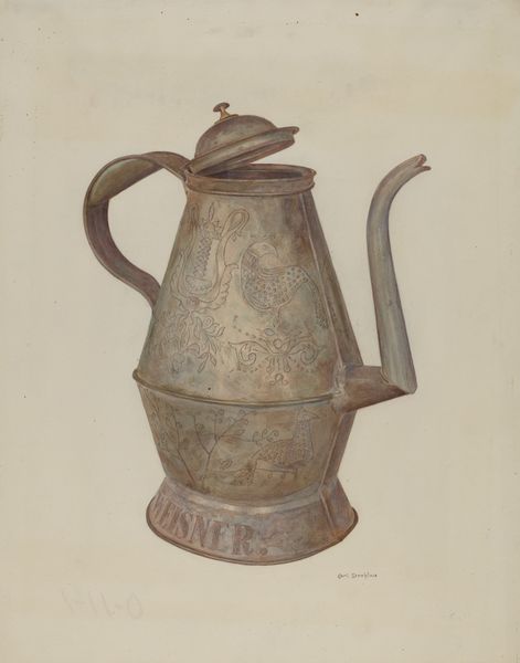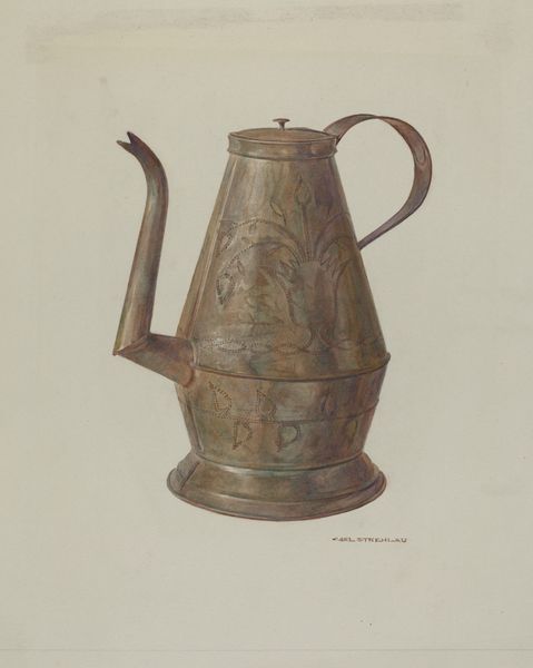 Here's "Tin Milk Warmer," made by Edward L. Loper using watercolor, graphite, and colored pencil. Look at the way the colors seem to blend and bleed, creating a kind of ghostly presence, all thin washes and delicate strokes. It’s all about the process of layering. There's a real tenderness in the way Loper captures the object's worn surfaces. The rusty hues and subtle gradations of tone give it a sense of history. The way the paint is applied, almost like a stain, lets the paper show through, adding to that feeling of lightness. Notice the small door on the side – it's almost like a secret passage, hinting at the stories this object could tell. Loper's work shares a sensibility with that of Giorgio Morandi – both artists saw the extraordinary in the ordinary, elevating humble objects to a level of quiet contemplation. Art is always about seeing something familiar in a new way, isn't it?