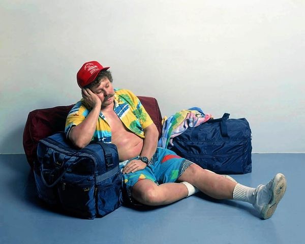 Duane Hanson, who was active in the late 20th century, created “Man on a Bench,” which is an unsettlingly lifelike sculpture. Hanson’s hyperrealist figures often represented working-class individuals in mundane settings, challenging traditional heroic or idealized sculptures. This sculpture captures a palpable sense of weary resignation, a figure perhaps overlooked or ignored by society. In a culture that often prizes youth and vigor, the image of an older man sitting alone invites reflections on aging, visibility, and the quiet struggles of everyday life. The figure carries a brown paper bag. We wonder what it contains, what it means. Hanson’s work prompts questions about who we choose to see and value. By casting figures like this man, Hanson asks us to confront our own biases and assumptions about the people we encounter in public spaces. It captures the loneliness and isolation experienced across the country.
